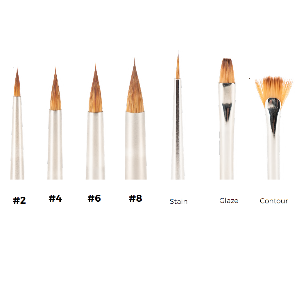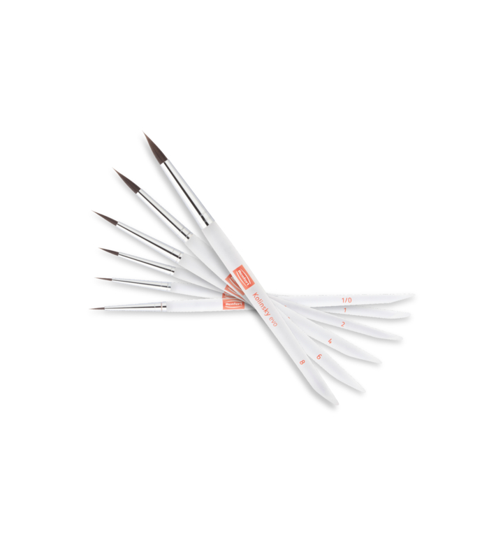 Pensule Kolinsky Evo din par bionic pentru aplicarea de ceramică.