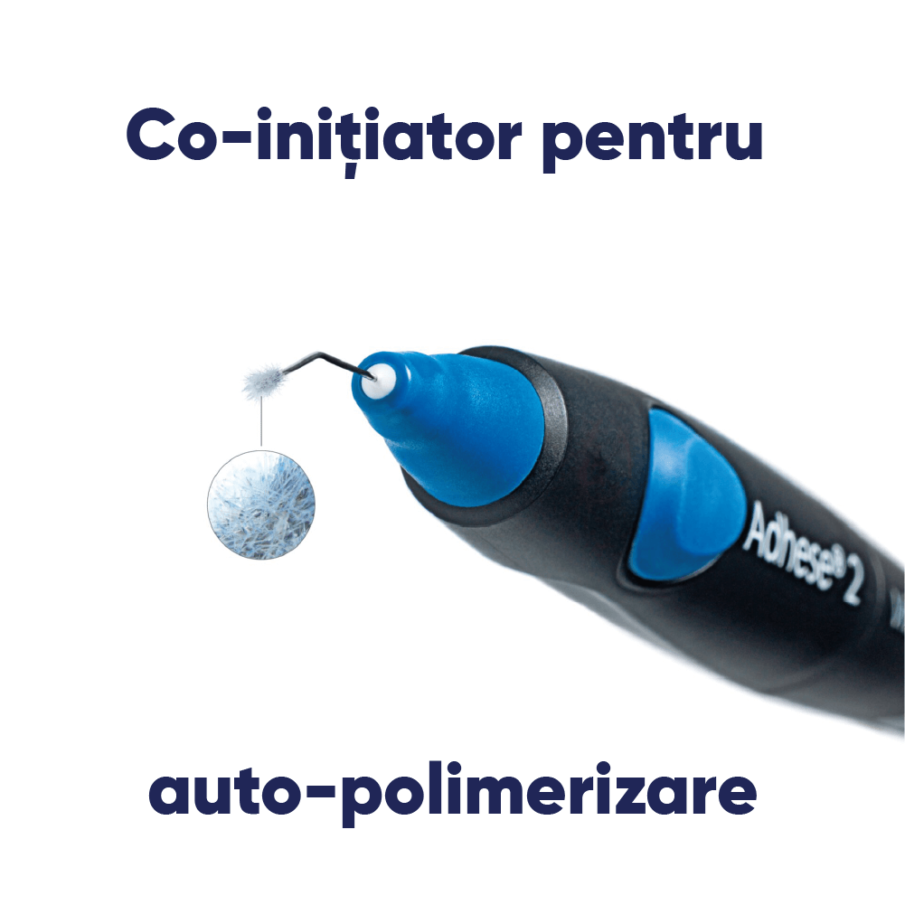 Datorită canulei DC albastre inovatoare Adhese 2 permite aplicarea sigură a polimerizării duale direct din VivaPen, fiind potrivit atât pentru materialele fotopolimerizabile, cât și pentru cazurile clinice în care nu se poate garanta o polimerizare eficientă cu lumină, cum ar fi cimentarea adezivă a restaurărilor indirecte. - Vârful canulei DC albastre este impregnat cu un co-inițiator pentru autopolimerizare. În plus, pentru compatibilitate cu materialele auto- și dublu polimerizabile nu este nevoie de un activator separat.