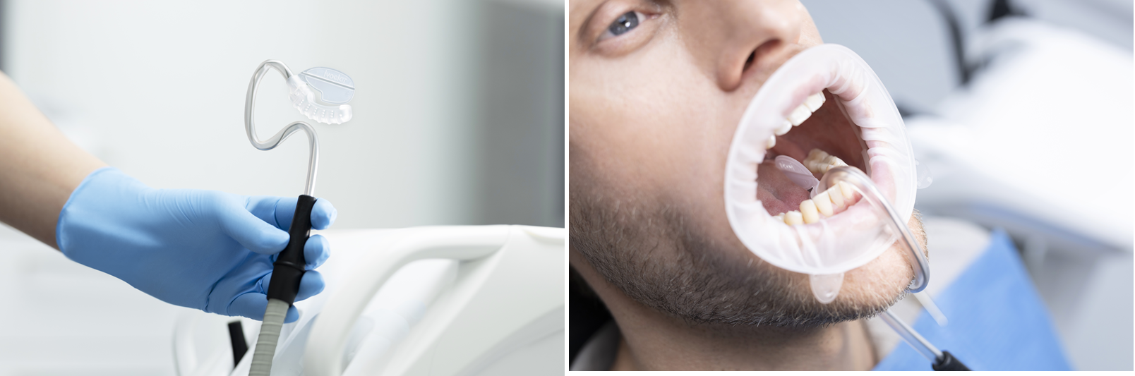 - Acces liber la zona de tratament si protectie suplimentara a limbii datorita retractorului lingual integrat