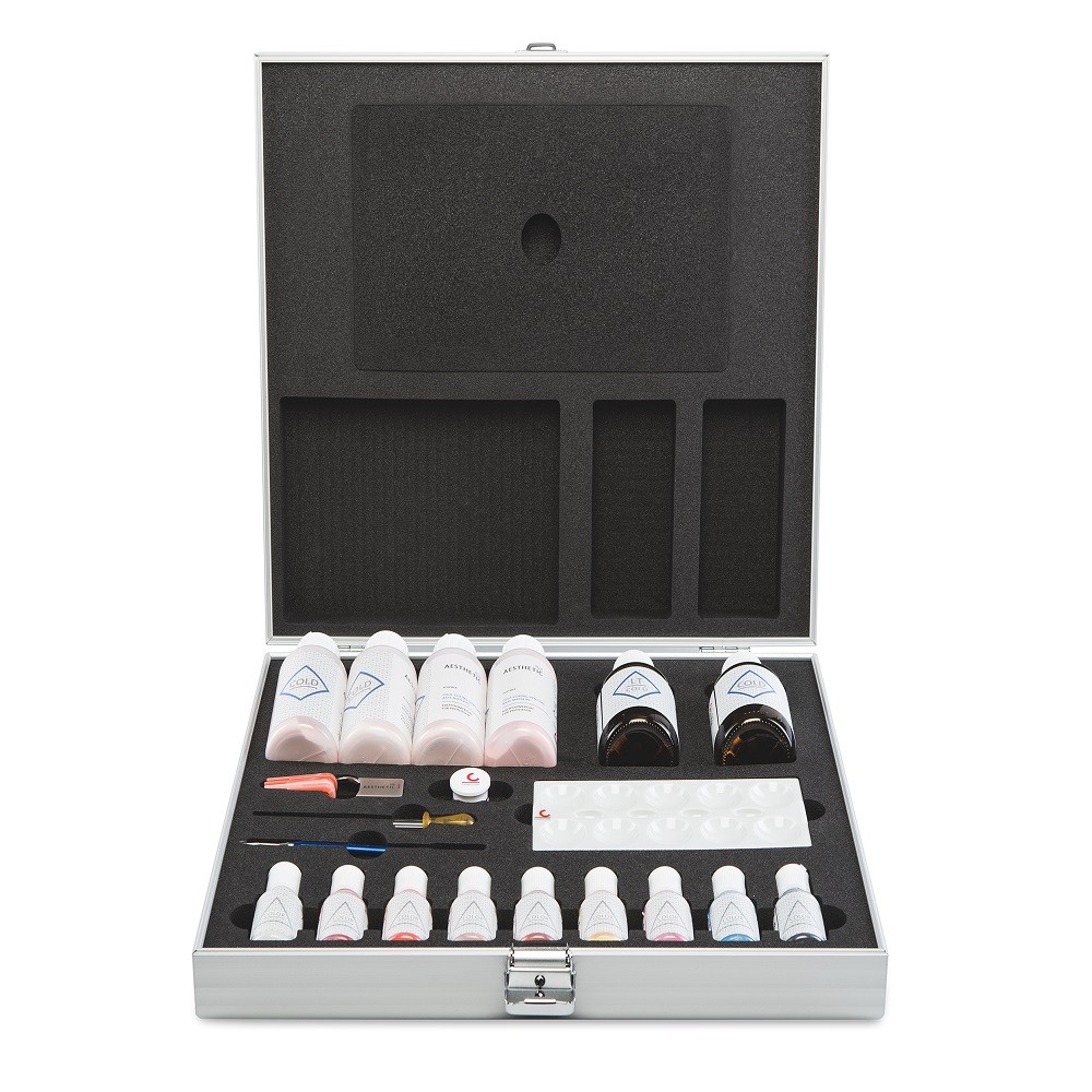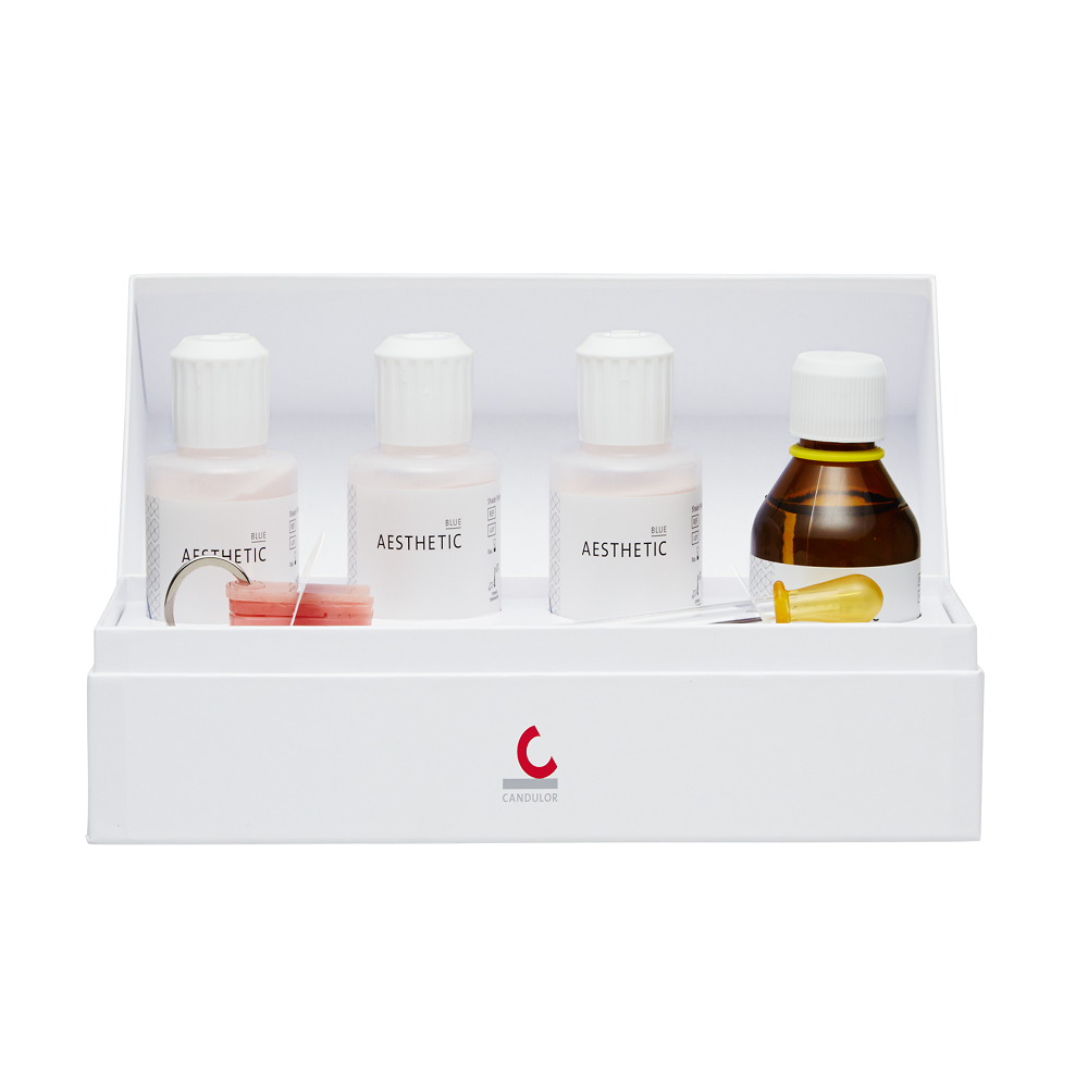 Aesthetic Blue Color Set Easy de la Candulor reprezintă soluția completă pentru realizarea bazelor protetice cu o finisare naturală și estetică superioară. Acest set este proiectat pentru a simplifica și eficientiza procesul de fabricație al protezelor, integrând nuanțe pre-mixate și materiale auxiliare de calitate înaltă.