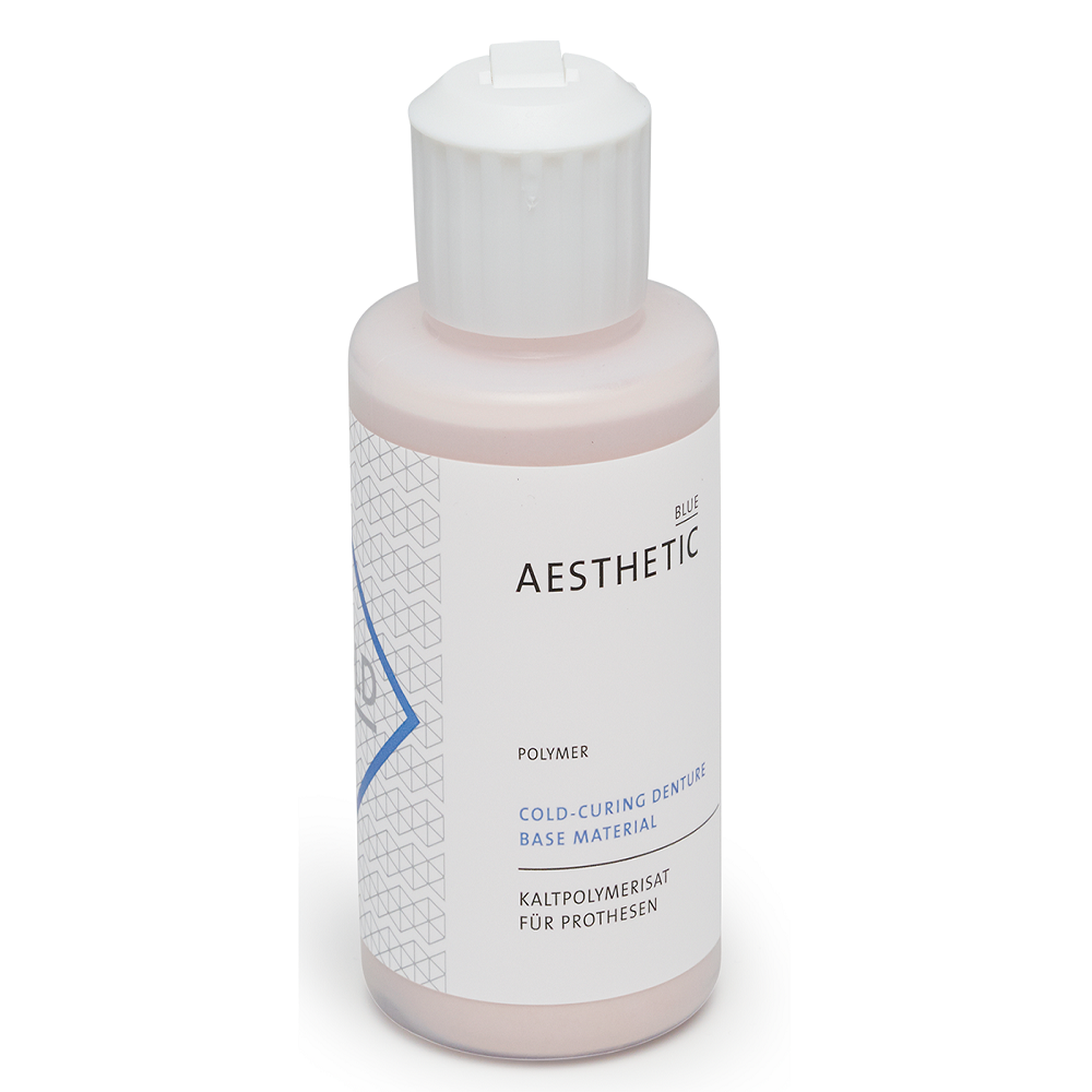 Acrilat autopolimerizabil Aesthetic Easy Colors Blue Polymer 100 g pentru realizarea bazei protezei. Aspectul este deosebit de estetic natural.