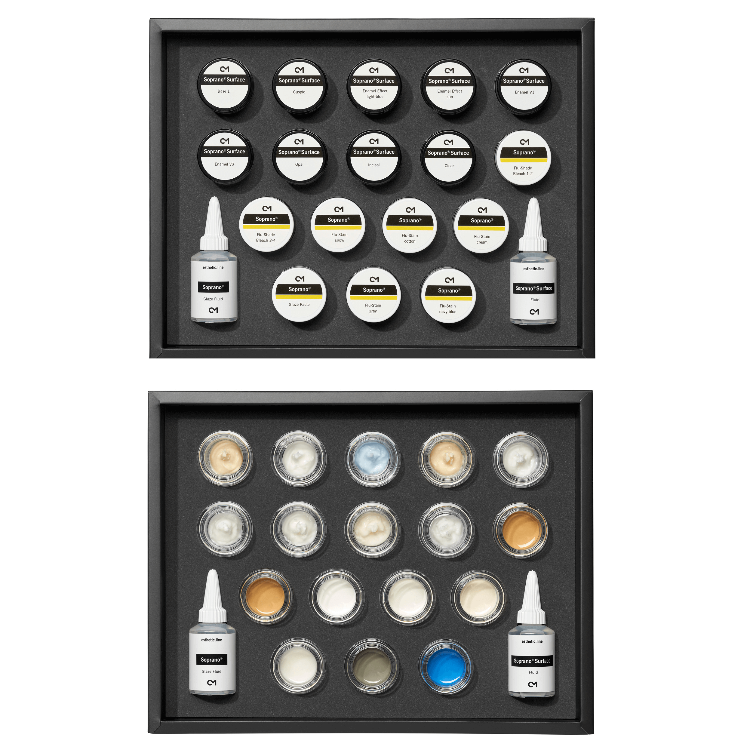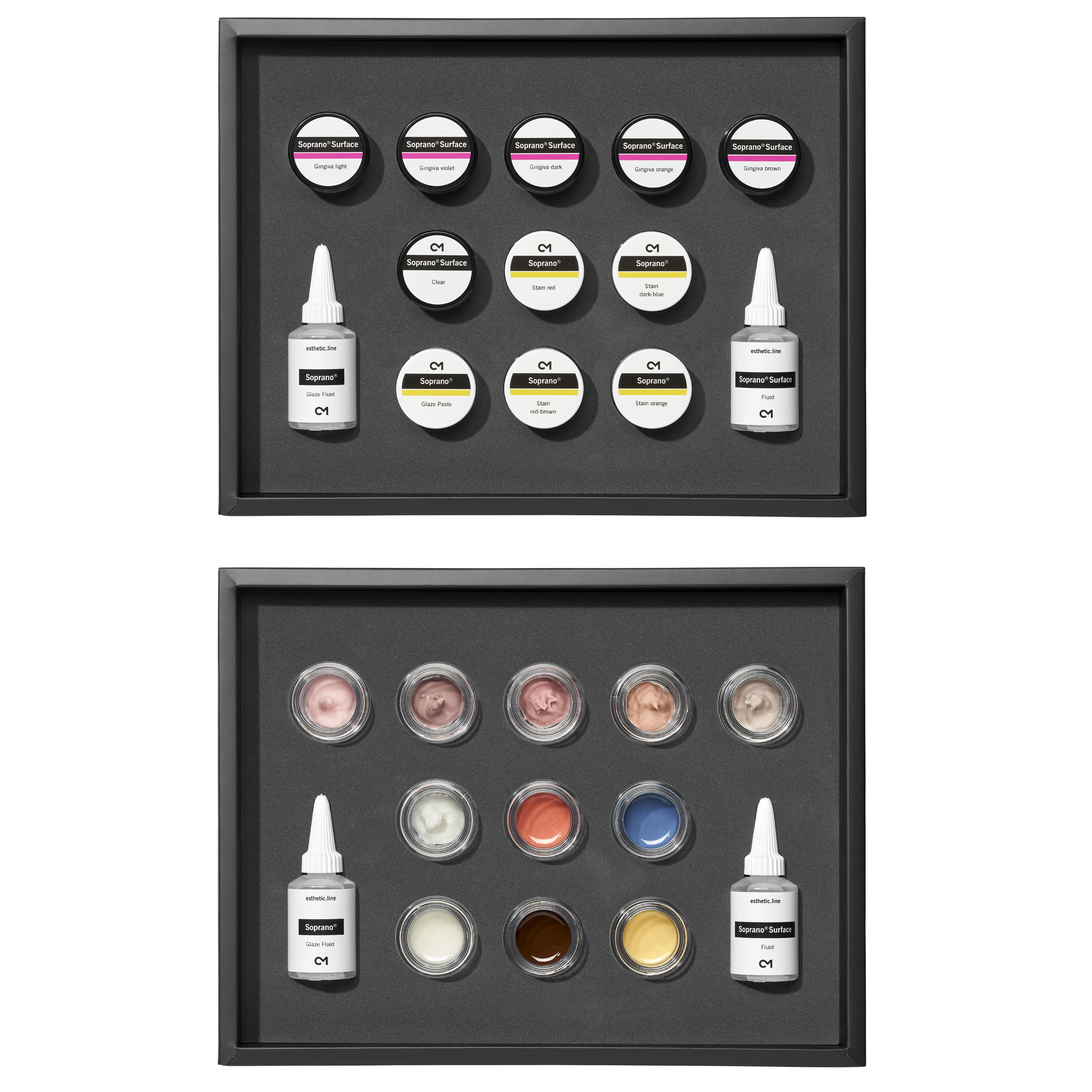 Este o trusa pentru individualizarea restaurarilor naturale realizate cu ceramica Soprano 14 si Soprano Surface.