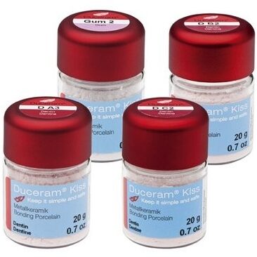 Duceram Kiss Powder Opaque este o ceramică opacă de bază, destinată pentru placarea metalelor cu un coeficient de expansiune termică (CTE) între 13,8 și 15,4 µm/m·K, oferind un strat opac uniform și natural. Cu pigmenți optimizați pentru o cromatică naturală și stabilitate excelentă la ardere, acest produs este utilizat pentru fațetarea metalelor prețioase și neprețioase.