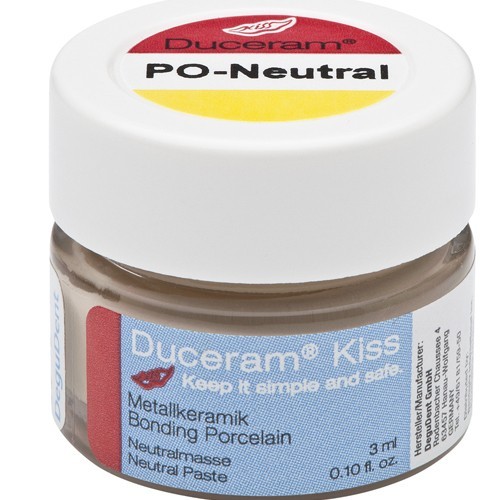 Pastă ceramică universală, utilizată pentru placarea metalelor în restaurările dentare, oferind o bază neutră ideală pentru stratificarea ulterioară. Această pastă garantează o cromatică uniformă și naturală, fiind parte din gama de ceramică Duceram Kiss, cunoscută pentru versatilitatea și performanțele sale estetice.