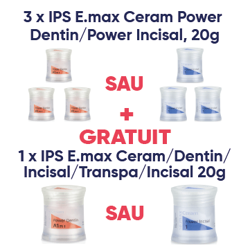 Pentru finalizarea comenzii va rugam sa ne sunati pentru a va alege nuantele de Ceramica IPS E.max Ceram Power Dentin 20g, Power Incisal 20g Ivoclar.