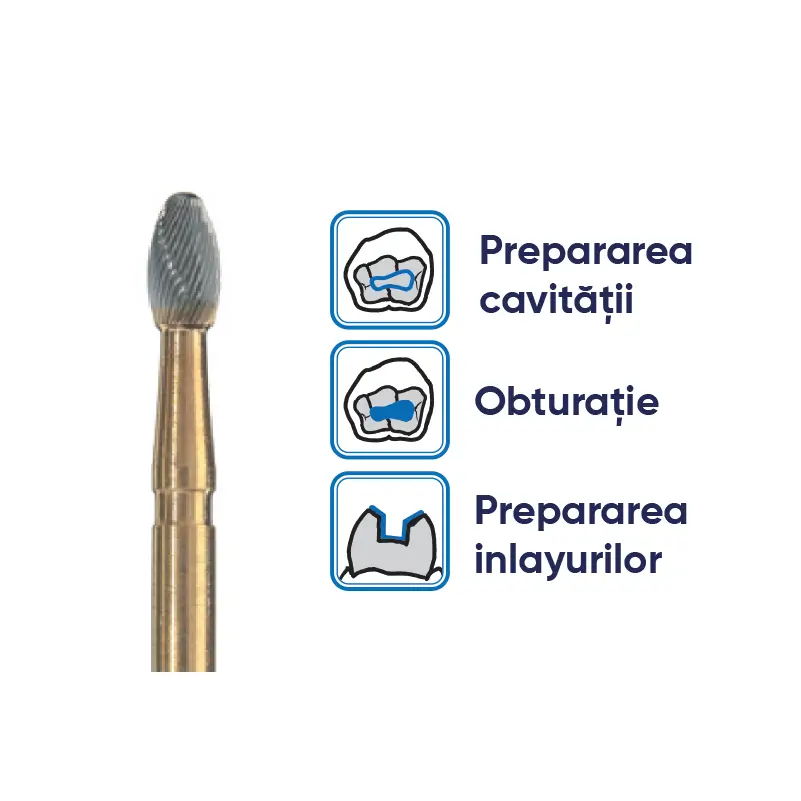 Freze finisare extradure pentru turbina, realizate din carbura, sunt utilizate in chirurgia orala pentru taierea si slefuirea dintilor, a osului si a protezelor dentare.