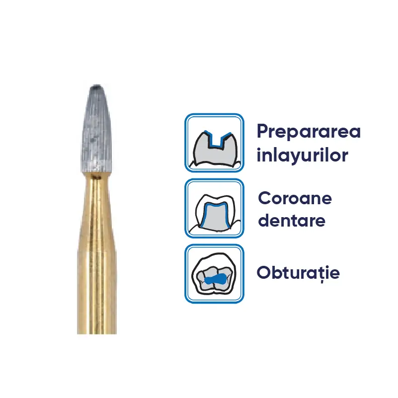 Freze finisare extradure pentru turbina, realizate din carbura, sunt utilizate in chirurgia orala pentru taierea si slefuirea dintilor, a osului si a protezelor dentare.