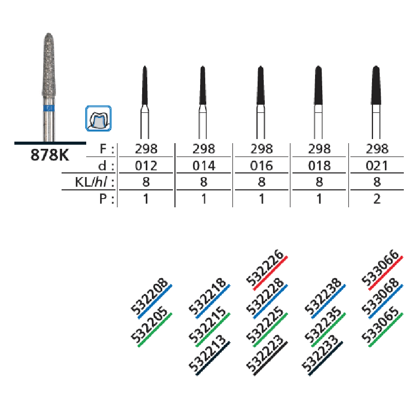 - F: 298 → formă freză (geometrie pentru preparări fine)