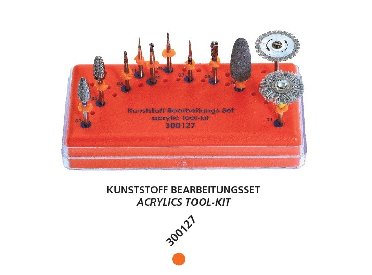 Kit materiale acrilice DFS format din freze, discuri si perii pentru materiale acrilice