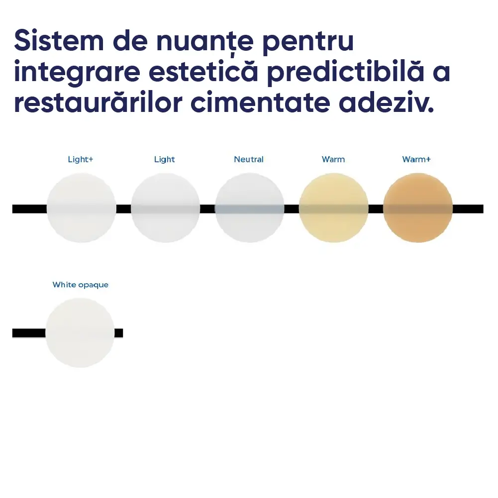 - Indicat pentru cimentarea restaurarilor cu o grosime mai mica de 2 mm si translucenta mare (IPS e.max HT).